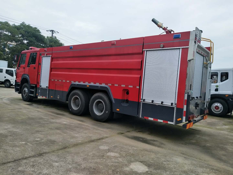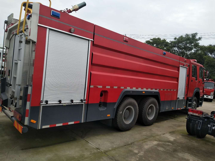 國六重汽豪沃16噸水罐消防車整車型號為: JDF5314GXFSG160/Z6型水罐消防車采用重汽TX7系原裝底盤ZZ5357TXFV464MF5二類底盤改裝而成。駕駛室為原裝TX-S駕駛室,主氣囊+副機械型座椅,乘員室前部與駕駛室連通,原裝雙排四開門,可乘坐2+4人,該車為外露罐結構,車身前部為器材箱,中部為罐體,后部為泵房。載液罐體為優質碳鋼,與底盤采用彈性連接,載水16000kg(PM160),,裝備了上海雄真消防設備有限公司生產CB20.10/30.60型中低壓消防泵,額定流量60L/S,車頂安裝成都威斯特消防機械有限公司生產的PL48(PM160)型車用消防炮。射程可達65米左右,該車**大的特點是載液量大、操控性好、維修簡便。可廣泛應用于公安消防隊、廠礦企業及社區、碼頭等場所,撲救大型油類火災或一般物質火災。