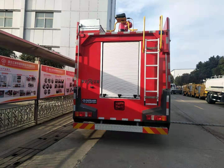 1、專用部分由液罐、泵室、器材箱、動力輸出及傳動系統、管路系統、電氣系統等組成。 2、消防車采用雙排整體式結構,視野開闊,乘員多,可乘坐6人;消防車可在行進中進行滅火,射程遠,滅火戰斗力強。 |