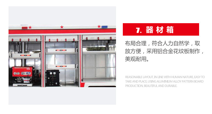 泵房 | 后置泵,泵房左右兩側(cè)、器材箱左右側(cè)均有新款易拉高強度鋁合金卷簾門。 | ||||