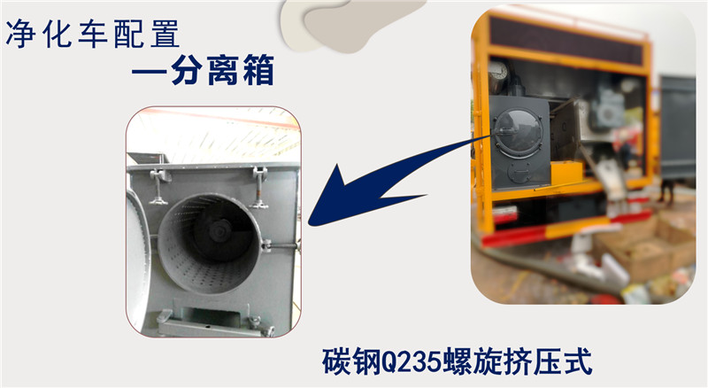 3、吸污凈化系統,通過車上的凈化設備把渾濁的污水處理成市政污水排放三級標準的清水,每小時5-30立方米。